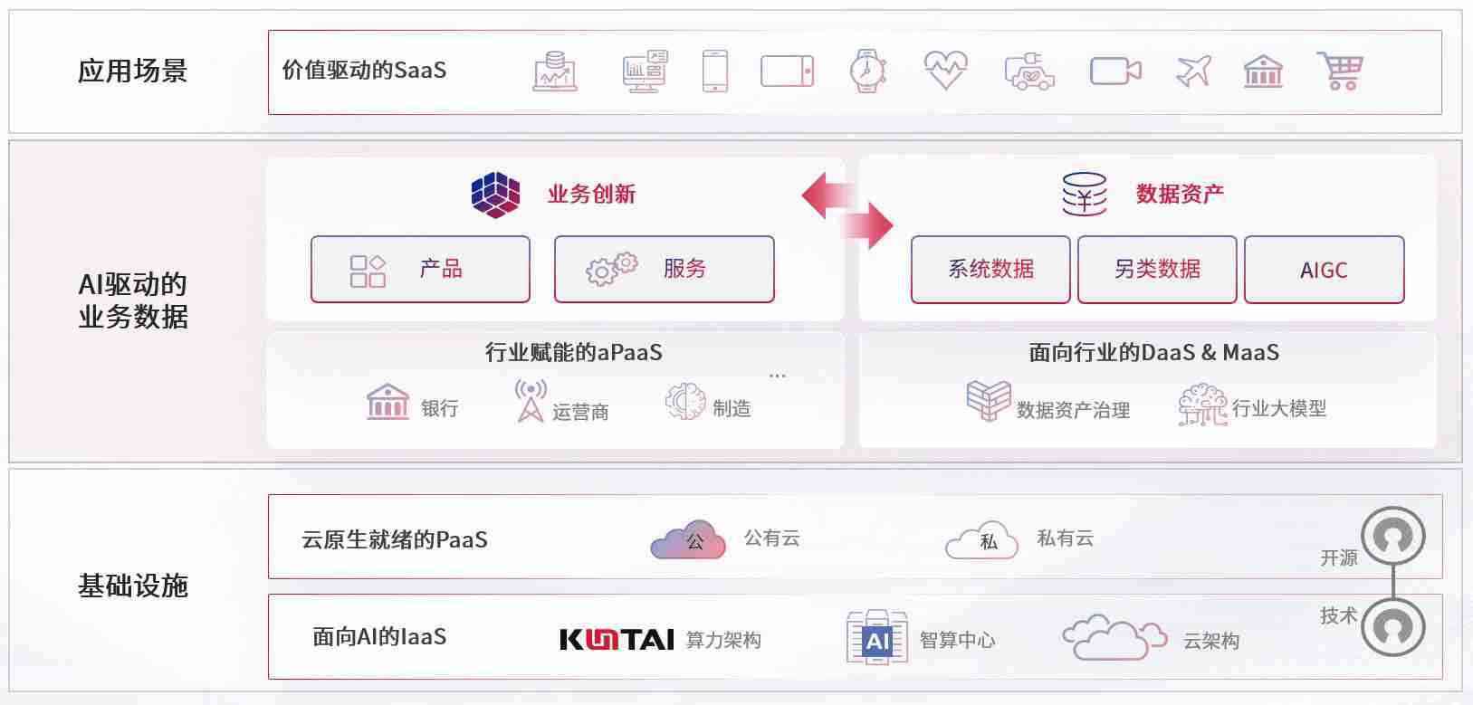 数字时代,,围绕企业数字化转型的关键要素,,,NG导航数码开创性的提出数云融合战略和技术体系框架,,,,着力在云原生、、、、数字原生、、、、AI原生和信创产业上架构产品和服务能力,,为处在不同数字化转型阶段的快消零售、、、、汽车、、金融、、、医疗、、政企、、、教育、、、运营商等行业客户提供泛在的敏捷IT能力和融合的数据驱动能力,,,,构建跨界融合创新的数字业务场景和新业务模式,,助力企业级客户建立面向未来的核心能力和竞争优势,,,全面推动社会的数字化、、、智能化转型升级。。。