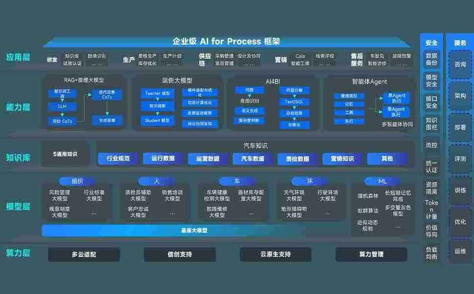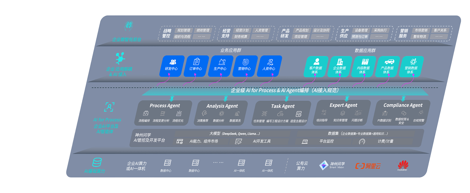 NG导航问学智车解决方案是一套基于AI技术的汽车行业智能化系统,,,覆盖从底层算力到顶层AI应用的全栈方案。。。。方案由算力层、、、、模型层和应用层组成:算力层,,方案支持多种一体机配置,,具备云端灵活部署、、、、多云适配以及动态优化计算资源的能力;模型层,,,,NG导航问学平台版提供了企业级AI应用一站式构建与管理平台,,支持基于后训练强化技术的汽车企业专属模型的训练、、、、评测和运营;应用层,,,NG导航问学DeepSeek版提供包括超级员工、、智能招采、、、、智能营销、、智能客服、、、、AI for BI等一系列解决方案,,,,可助力汽车行业实现数字化转型,,让管理更智能、、、响应更敏捷。。。。